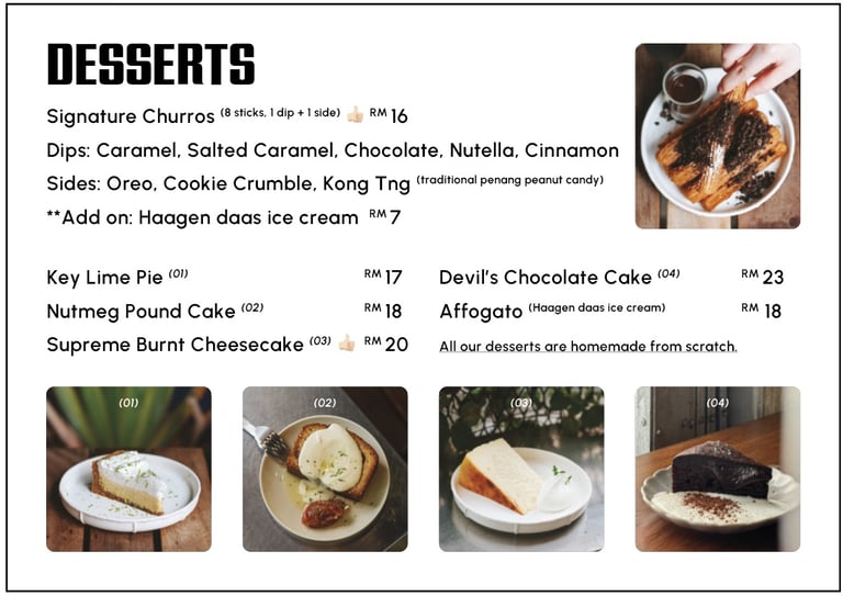 Whether you are here for our signature hand-piped churros—Penang’s iconic, crispy-chewy comfort, or a bright, precision V60 pour-over, every item is a labour of love. From our legendary Key Lime Pie & Burnt Cheesecake to the seasonal specialty coffee selections curated by our sister roastery, Nine Lives Coffee Roasters, the focus is always on sincerity and excellence.